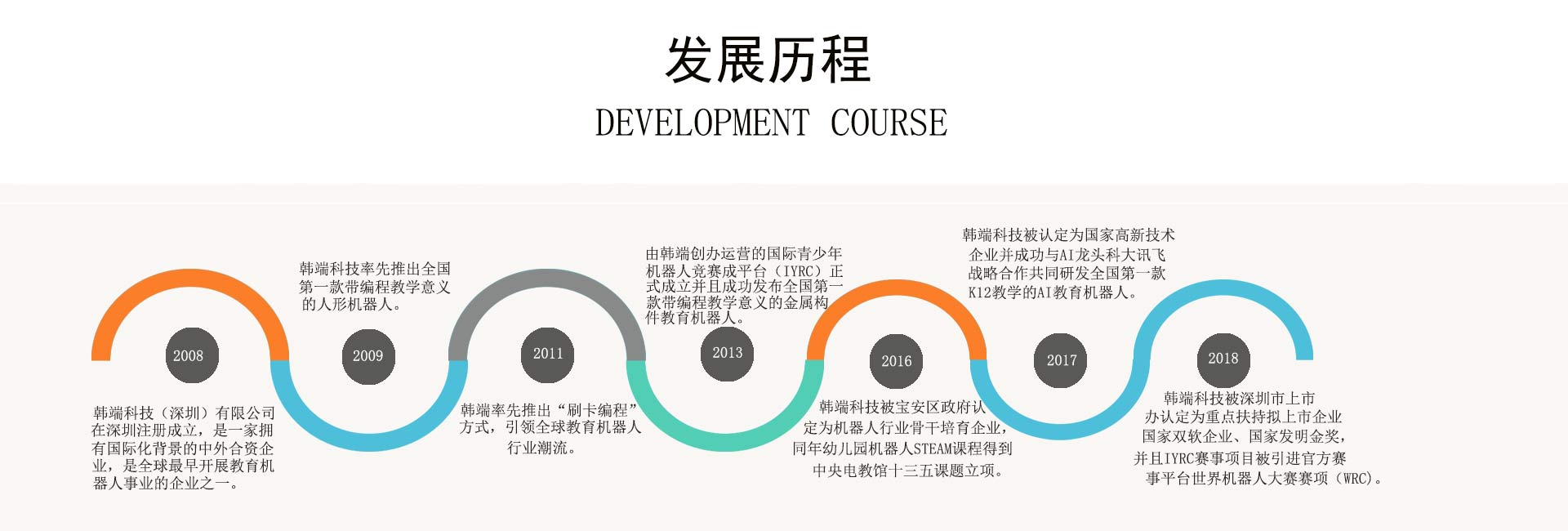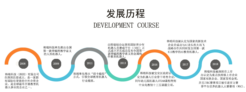 韓端科技(品牌:韓端、MY ROBOT TIME),于2008年在深圳成立,公司根植智能教育硬件賽道已經(jīng)14年之久,是深圳也是中國(guó)最早專注于這個(gè)細(xì)分領(lǐng)域的本土品牌之一。公司致力于向海內(nèi)外用戶提供以智能教育機(jī)器人為教學(xué)載體,覆蓋全學(xué)齡段的智能教育硬件產(chǎn)品和課程體系,是中國(guó)領(lǐng)先的機(jī)器人和人工智能編程教育產(chǎn)品技術(shù)服務(wù)商,也是我國(guó)青少年科學(xué)素質(zhì)教育行業(yè)的拓荒者之一。公司是教育部全國(guó)信息技術(shù)標(biāo)準(zhǔn)化技術(shù)委員會(huì)單位委員,中國(guó)教育技術(shù)協(xié)會(huì)人工智能專委會(huì)發(fā)起單位、北京大學(xué)學(xué)習(xí)科學(xué)實(shí)驗(yàn)室深度合作單位、國(guó)際青少年機(jī)器人協(xié)會(huì)(聯(lián)合國(guó)NGO理事會(huì)觀察員)創(chuàng)始單位。