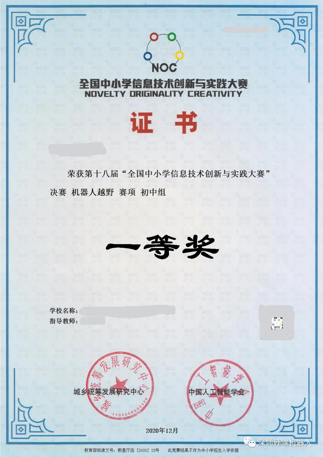 4月6日,NOC全國組委會正式發布《關于舉辦第十九屆全國中小學信息技術創新與實踐大賽的通知》(全組委函【2021】1號文),韓端為NOC機器人越野賽承辦單位!歡迎大家參加2021年4月8日15:00 線上講解會,踴躍報名參加教育部白名單賽事!