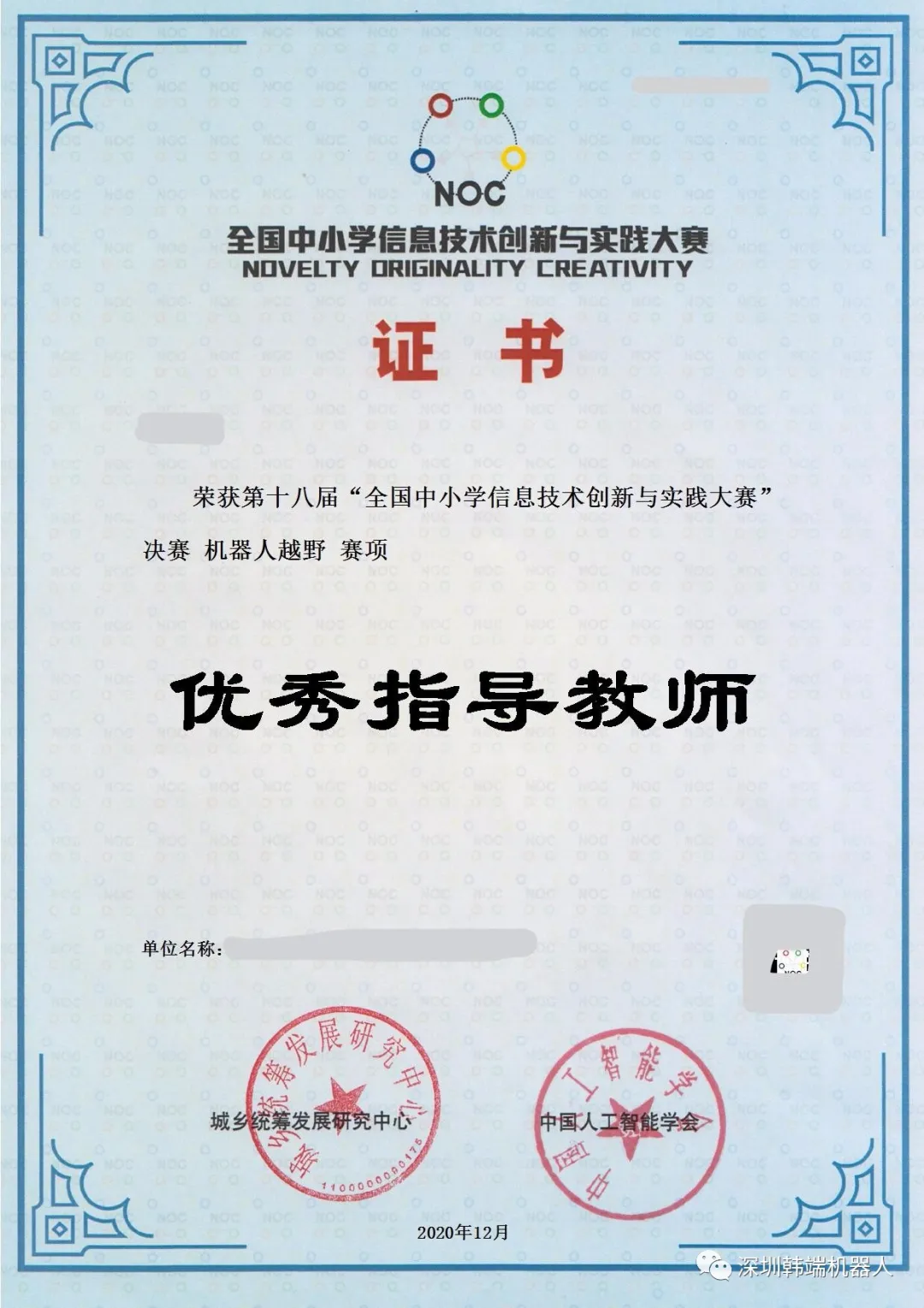 (NOC)獲獎證書