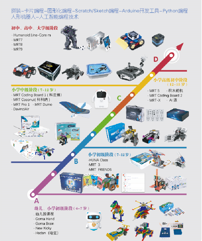 ▲韓端覆蓋全學(xué)齡段STEAM教育產(chǎn)品課程體系