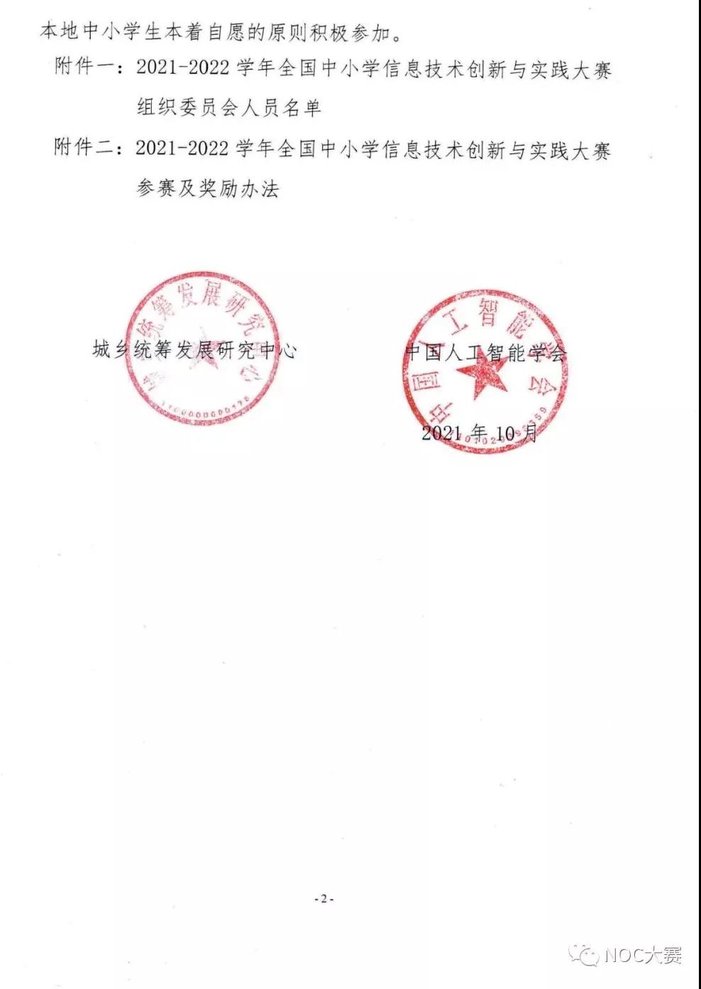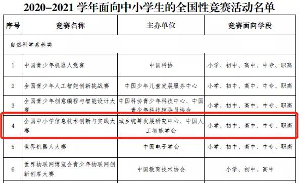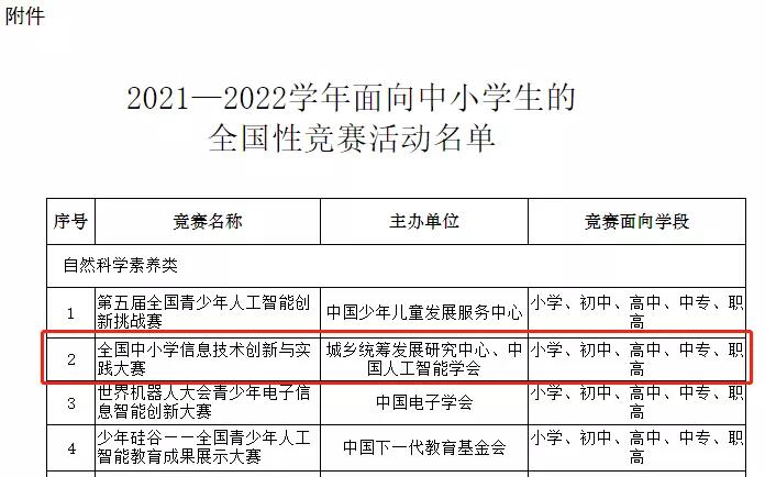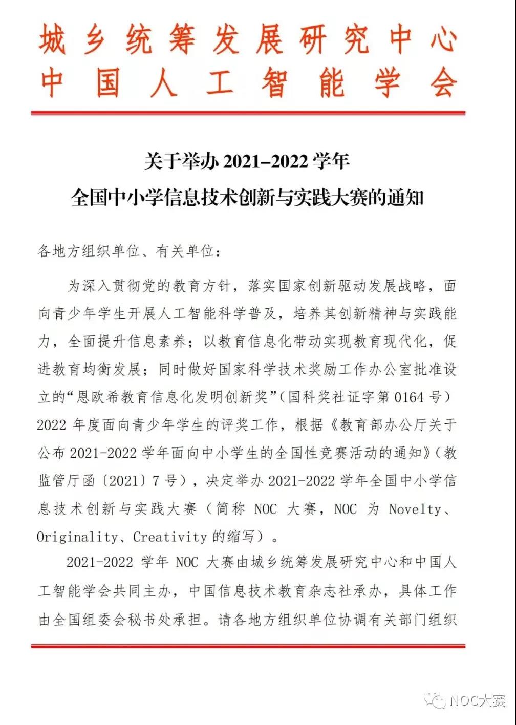 關(guān)于舉辦2021-2022學(xué)年全國(guó)中小學(xué)信息技術(shù)創(chuàng)新與實(shí)踐大賽(第20屆NOC)的通知