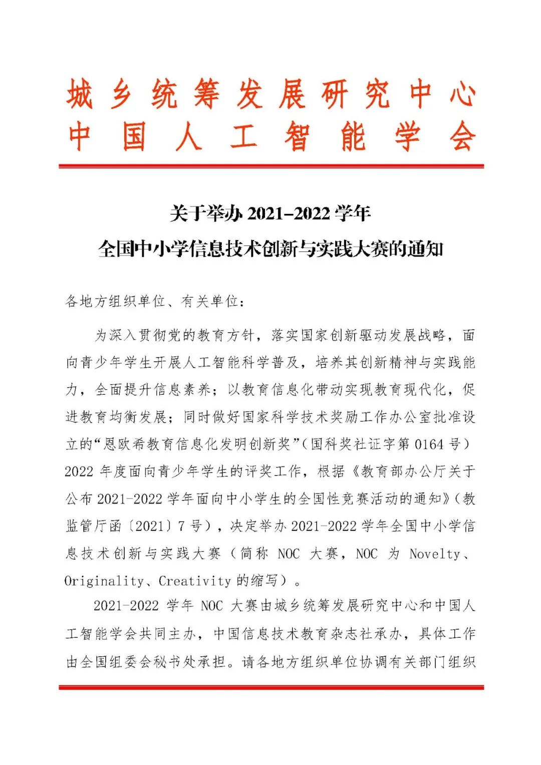 教育部辦公廳公布2021—2022學(xué)年面向中小學(xué)生的全國(guó)性競(jìng)賽活動(dòng)名單,名單分為自然科學(xué)素養(yǎng)類”“人文綜合素養(yǎng)類”“藝術(shù)體育類三類,其中全國(guó)中小學(xué)信息技術(shù)創(chuàng)新與實(shí)踐大賽(NOC等競(jìng)賽活動(dòng)進(jìn)入該名單。