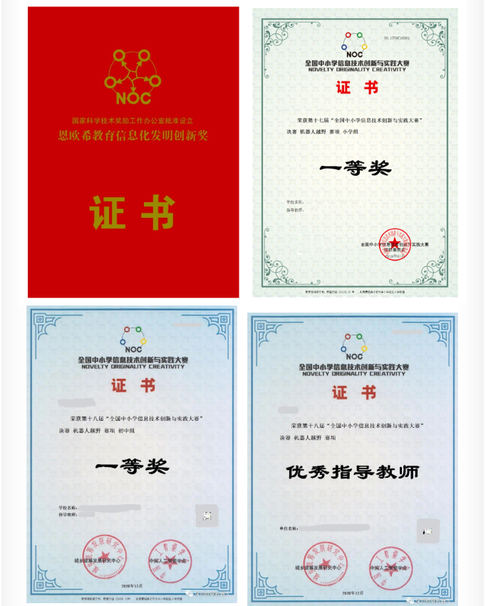 (NOC)獲獎(jiǎng)證書
