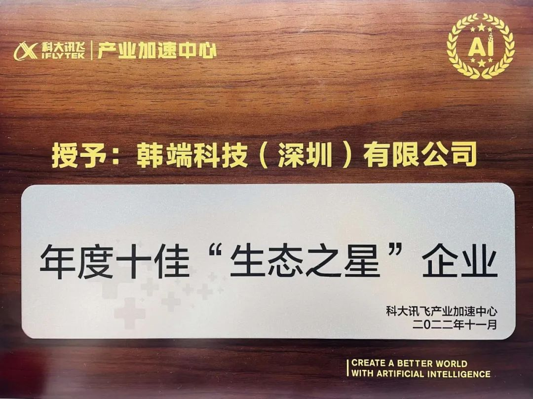 韓端科技精彩亮相第五屆世界聲博會暨2022科大訊飛1024全球開發(fā)者節(jié),獲評“年度十佳生態(tài)之星”、“最具商業(yè)價值獎”企業(yè)!