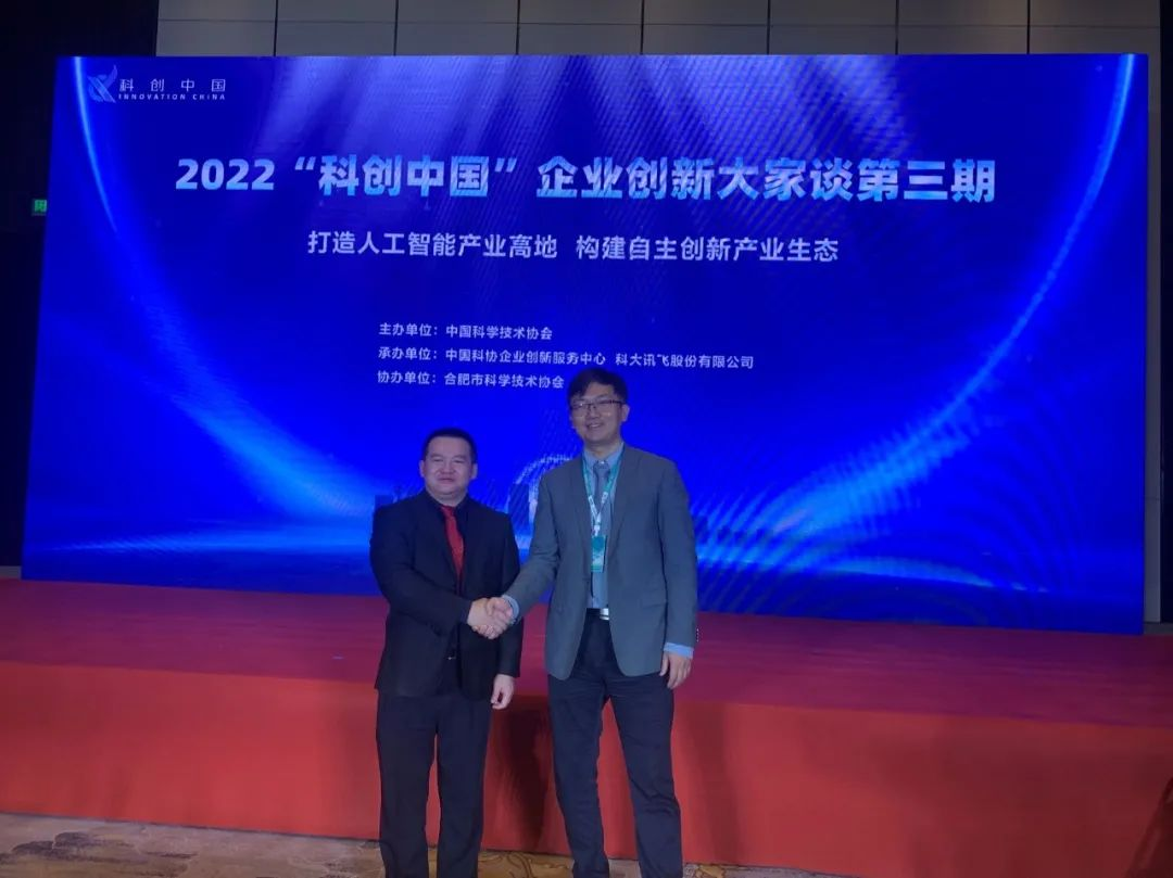 在高峰論壇上,韓端科技董事長鐘志剛先生作為科大訊飛年度”十佳生態(tài)之星”企業(yè)的發(fā)言代表受邀上臺發(fā)表了主題為“我們韓端,我們訊飛,因Ai而緣”的精彩演講,獲得了參會政府領(lǐng)導、科大訊飛領(lǐng)導和嘉賓的一致好評與贊許。